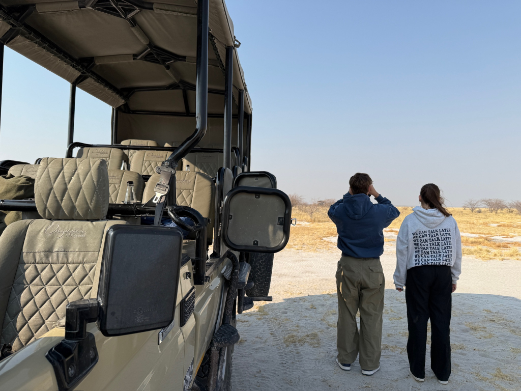 Vandaag beleven jullie de magie van de Afrikaanse bush op een heel bijzondere manier. In het wildreservaat in Onguma gaan jullie met een ervaren ranger op safari. Omdat dit reservaat kleiner is dan Etosha, weten de gidsen perfect waar de dieren zich bevinden. Zo krijgen jullie de kans om van dichtbij olifanten, neushoorns, giraffen, zebra’s en antilopen te spotten – een echte belevenis voor het hele gezin!