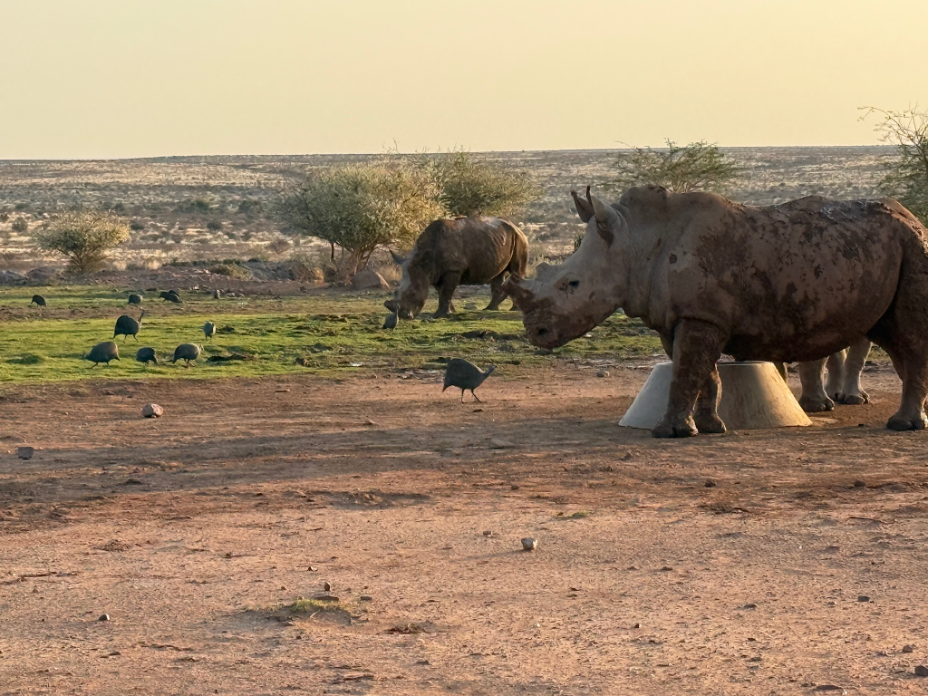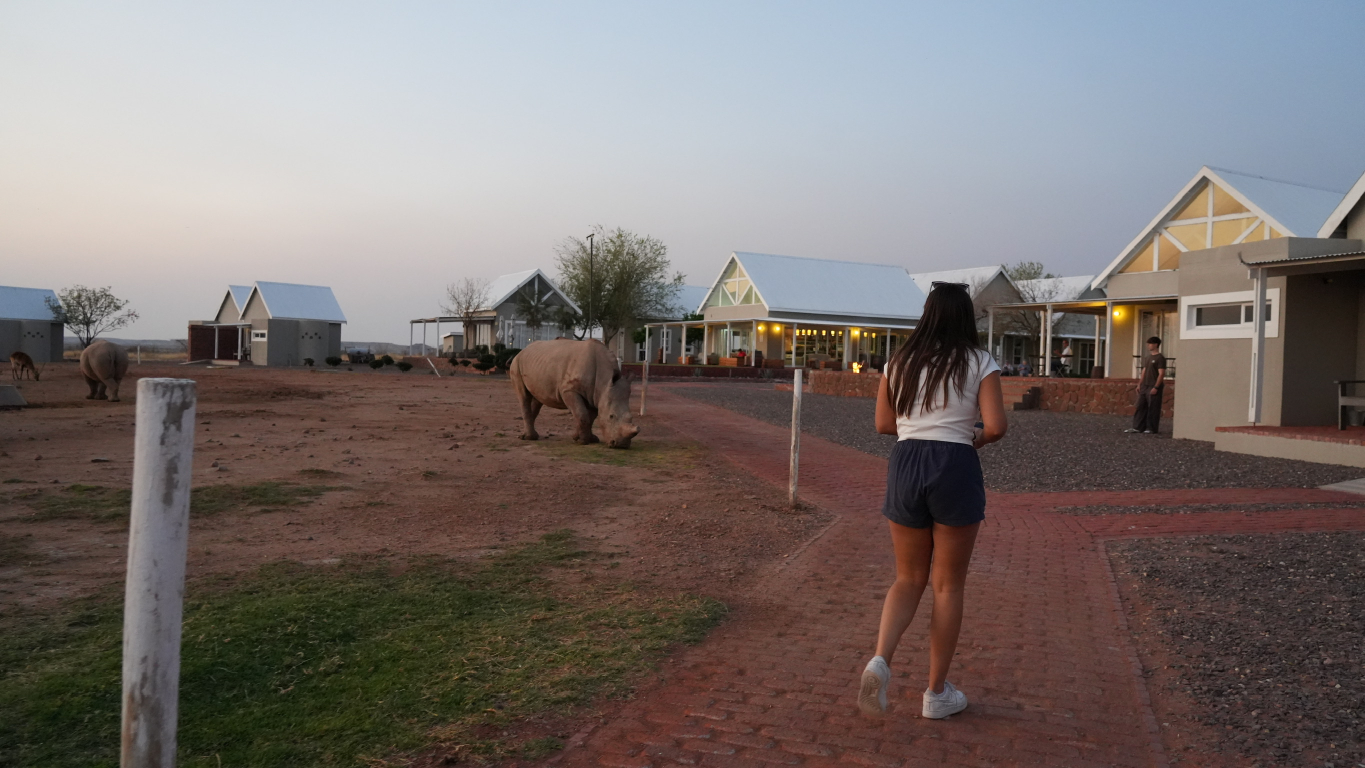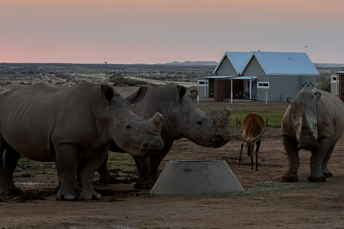 Vandaag beleven jullie een overnachting die je niet snel zult vergeten: midden in de natuur met neushoorns als indrukwekkende buren. In de ochtend trekken jullie je wandelschoenen aan voor een stevige wandeling door het reservaat. Je gaat speuren naar wilde dieren in hun natuurlijke omgeving en genieten van de magie van de Afrikaanse Kalahari woestijn.