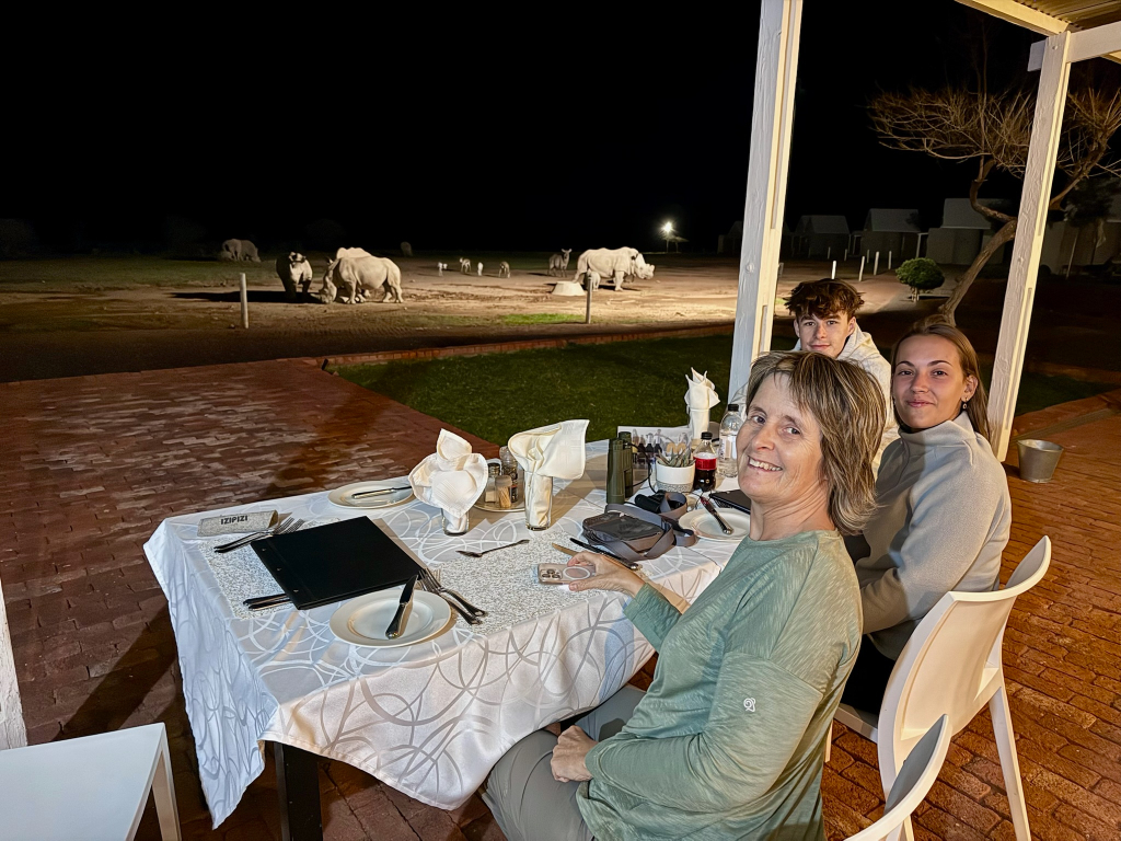 ’s Avonds schuiven jullie aan voor een heerlijk diner met uitzicht op de plek waar de neushoorns vaak komen drinken. Dit is een ervaring die voor zowel ouders als tieners onvergetelijk zal zijn.
