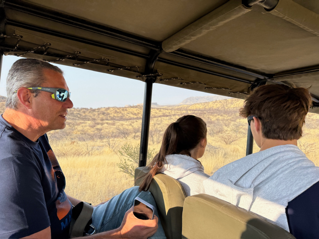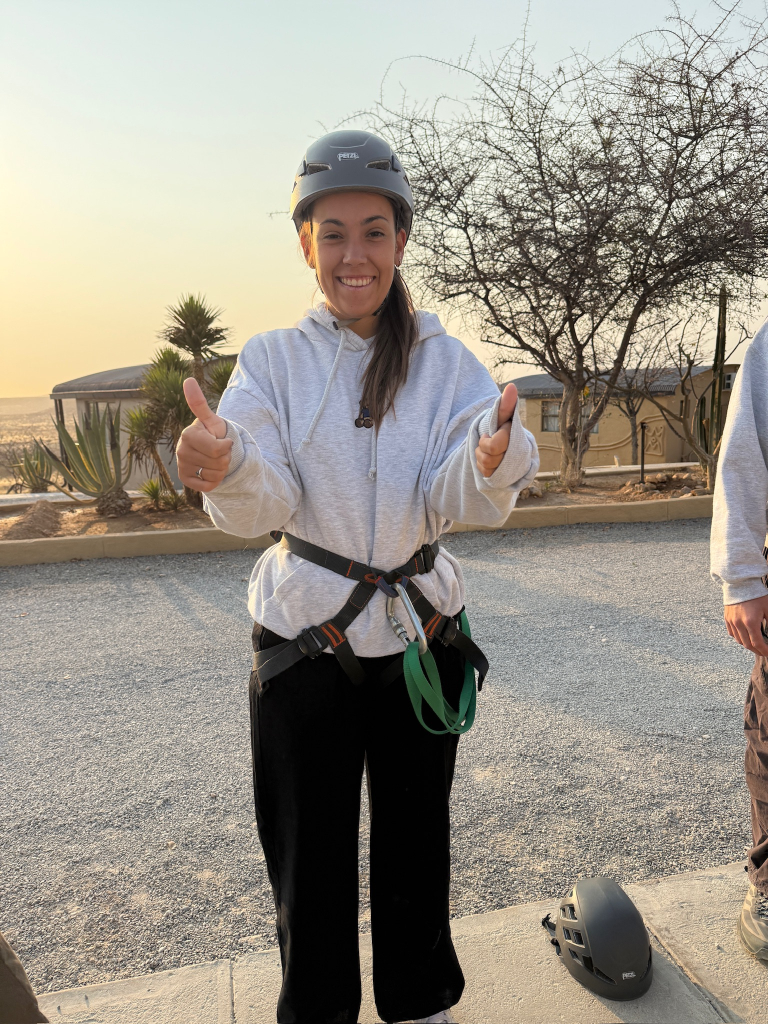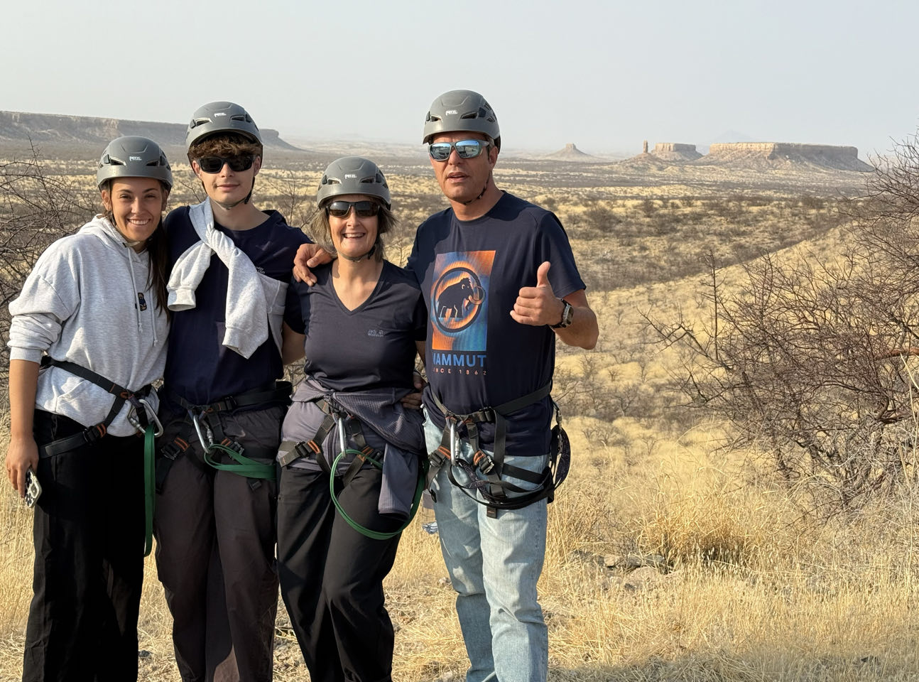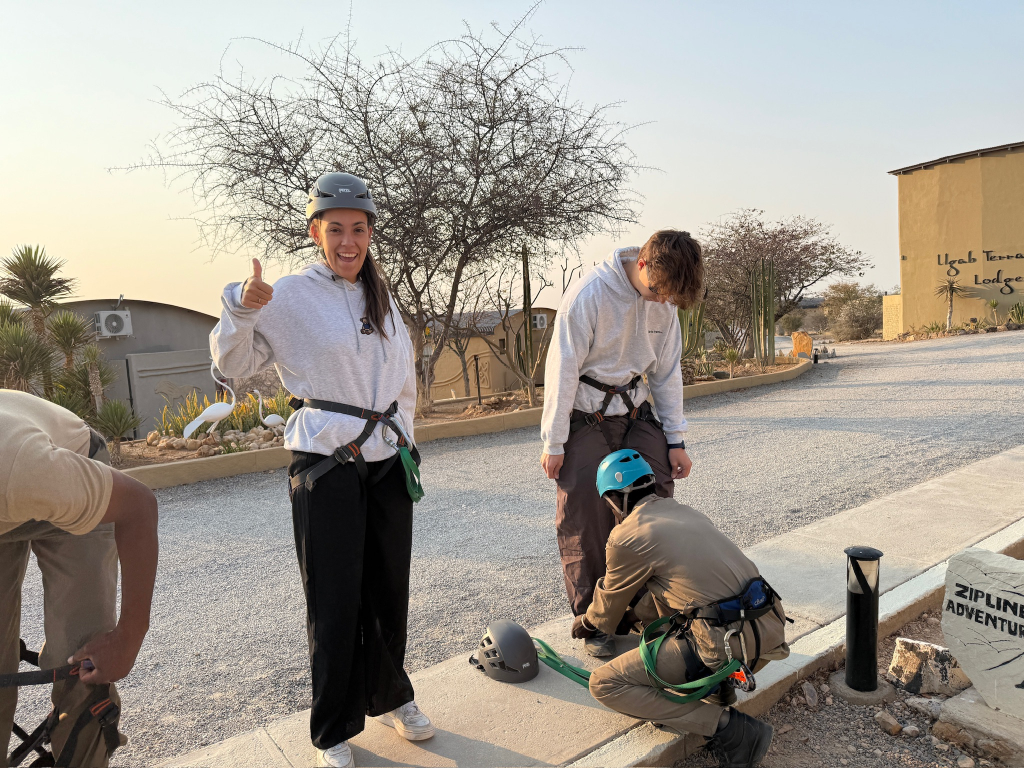 Vandaag wacht jullie een echte adrenalinekick: ziplinen hoog boven de ruige landschappen van Ugab. Eerst glijd je over de langste zipline van Namibië van maar liefst 880 meter, gevolgd door een tweede van 680 meter. Terwijl je door de lucht zoeft, geniet je van een spectaculair uitzicht over valleien en rotsformaties. Durf jij dit aan met de kinderen?