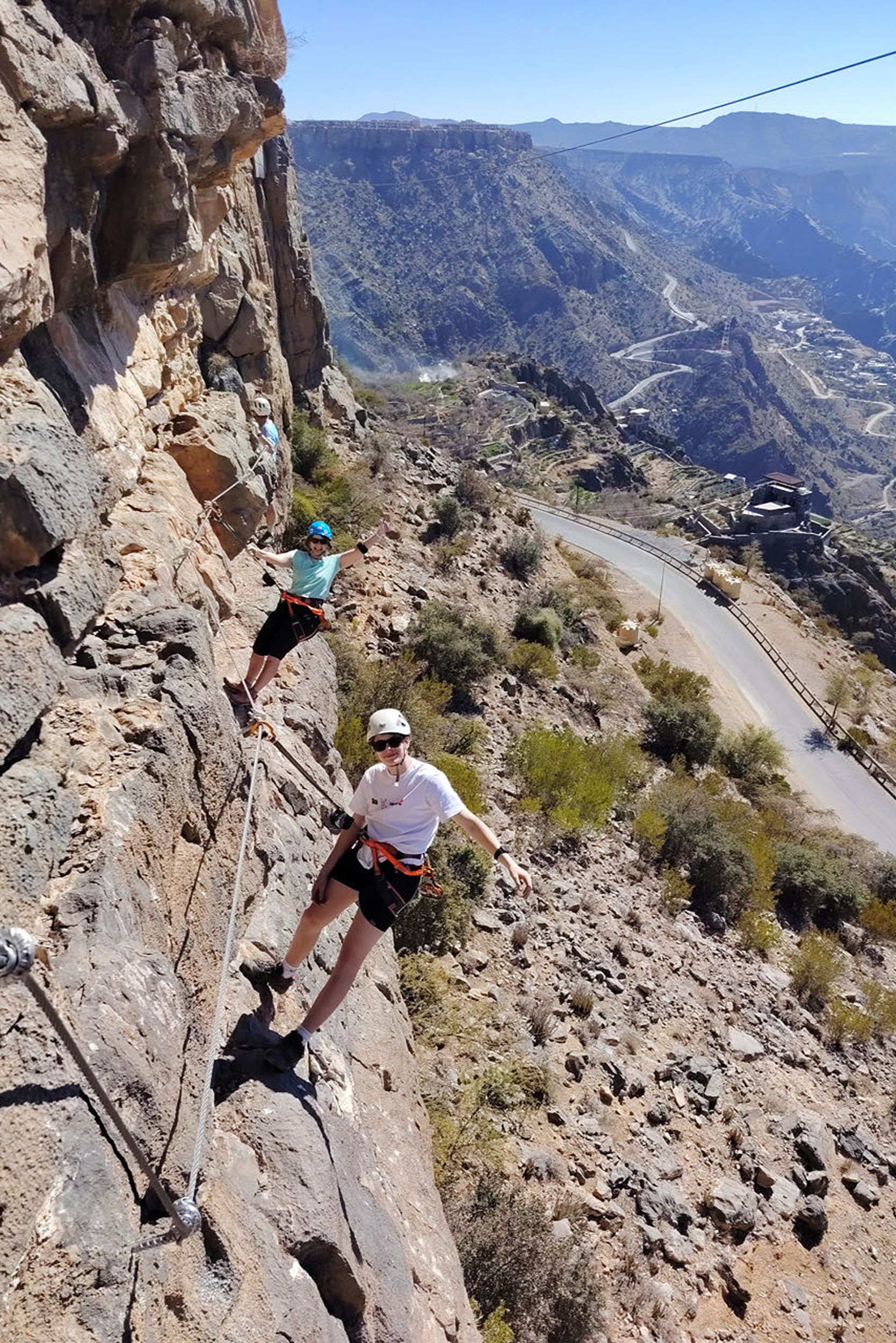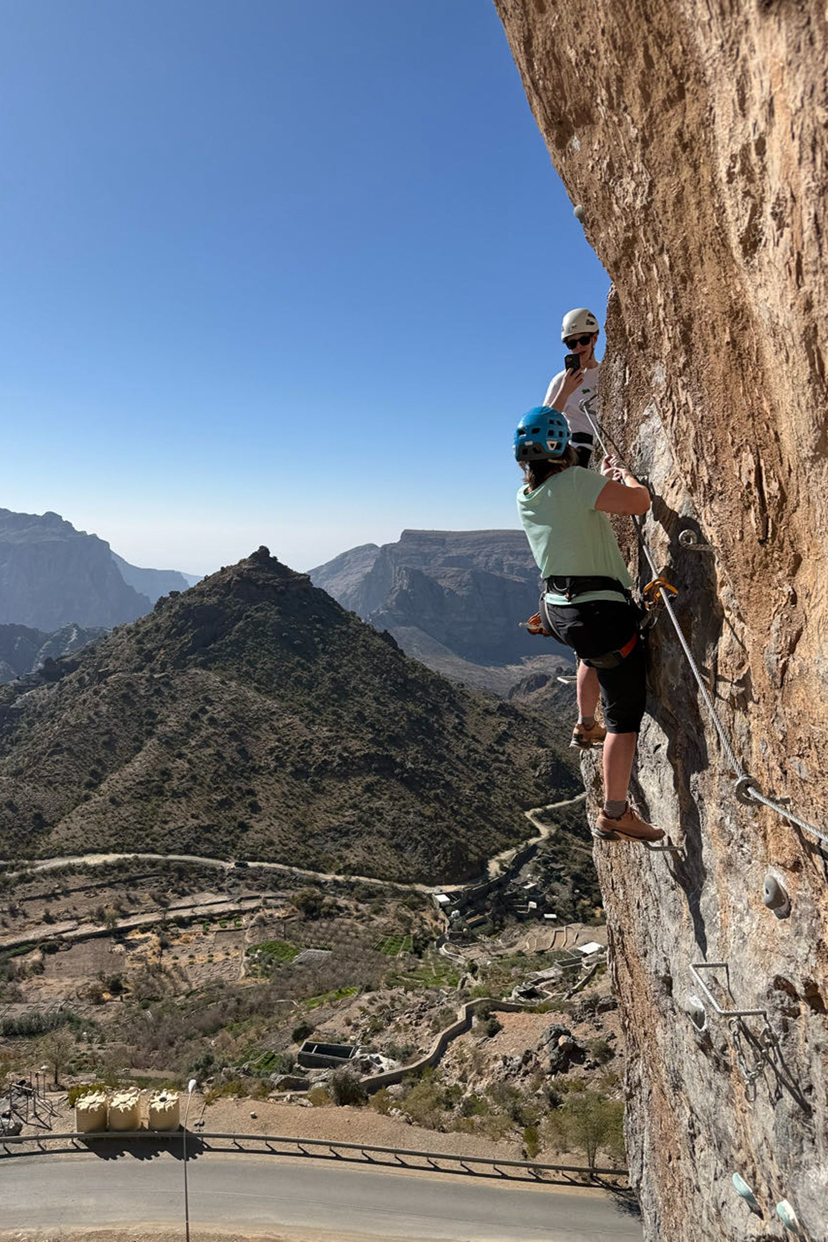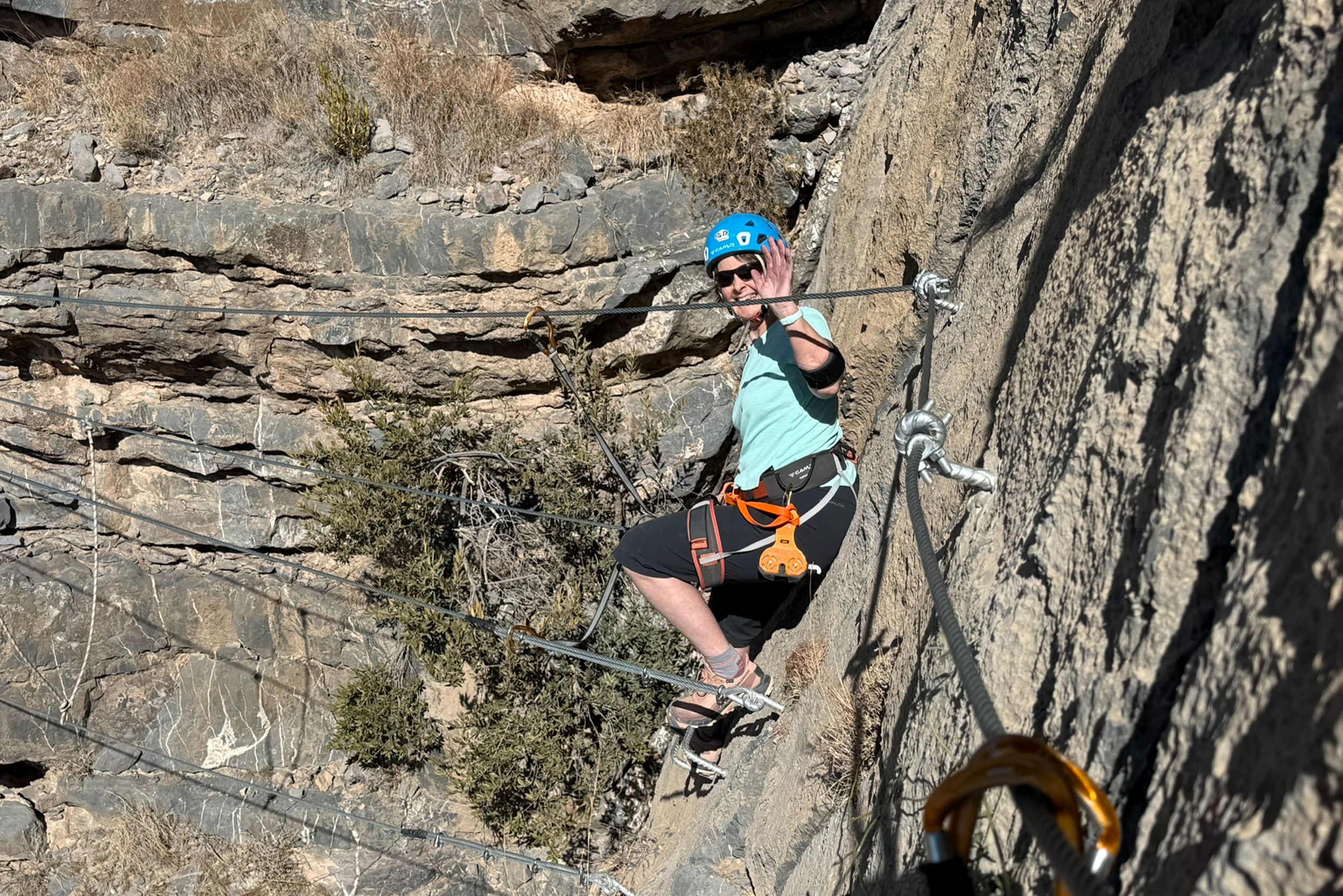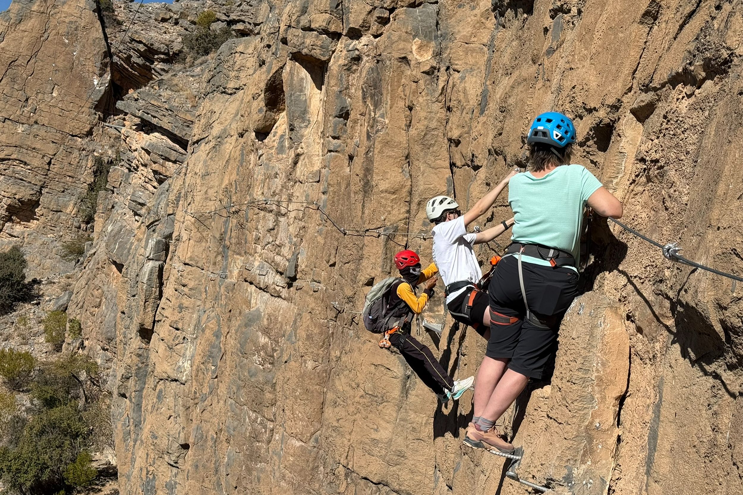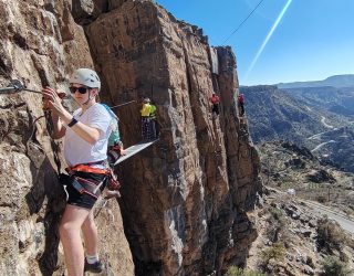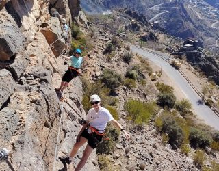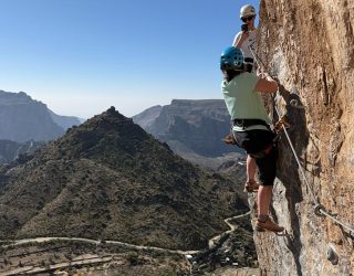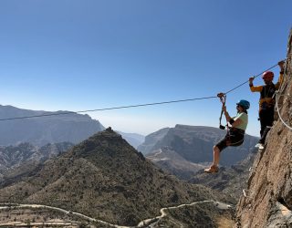 Vandaag beleven jullie samen met het gezin een echte avonturendag in de bergen van Jebel Akhdar. Tijdens deze via ferrata bewegen jullie langs de rotswanden via gezekerde kabels en stevige stappen, terwijl jullie genieten van indrukwekkende uitzichten over het ruige landschap van Oman.