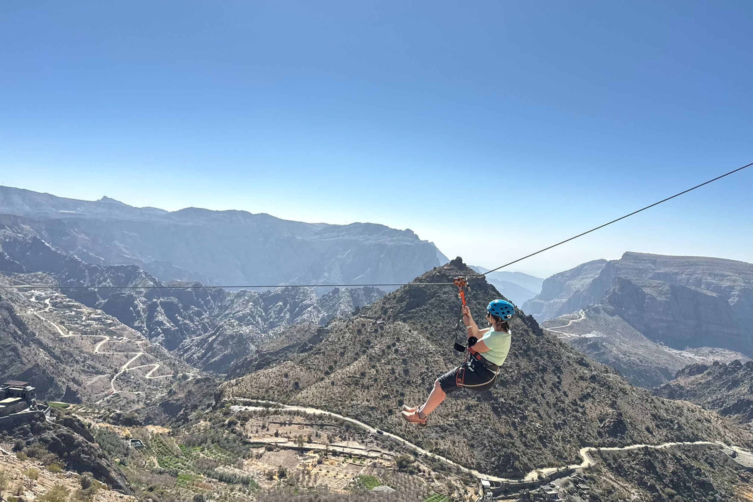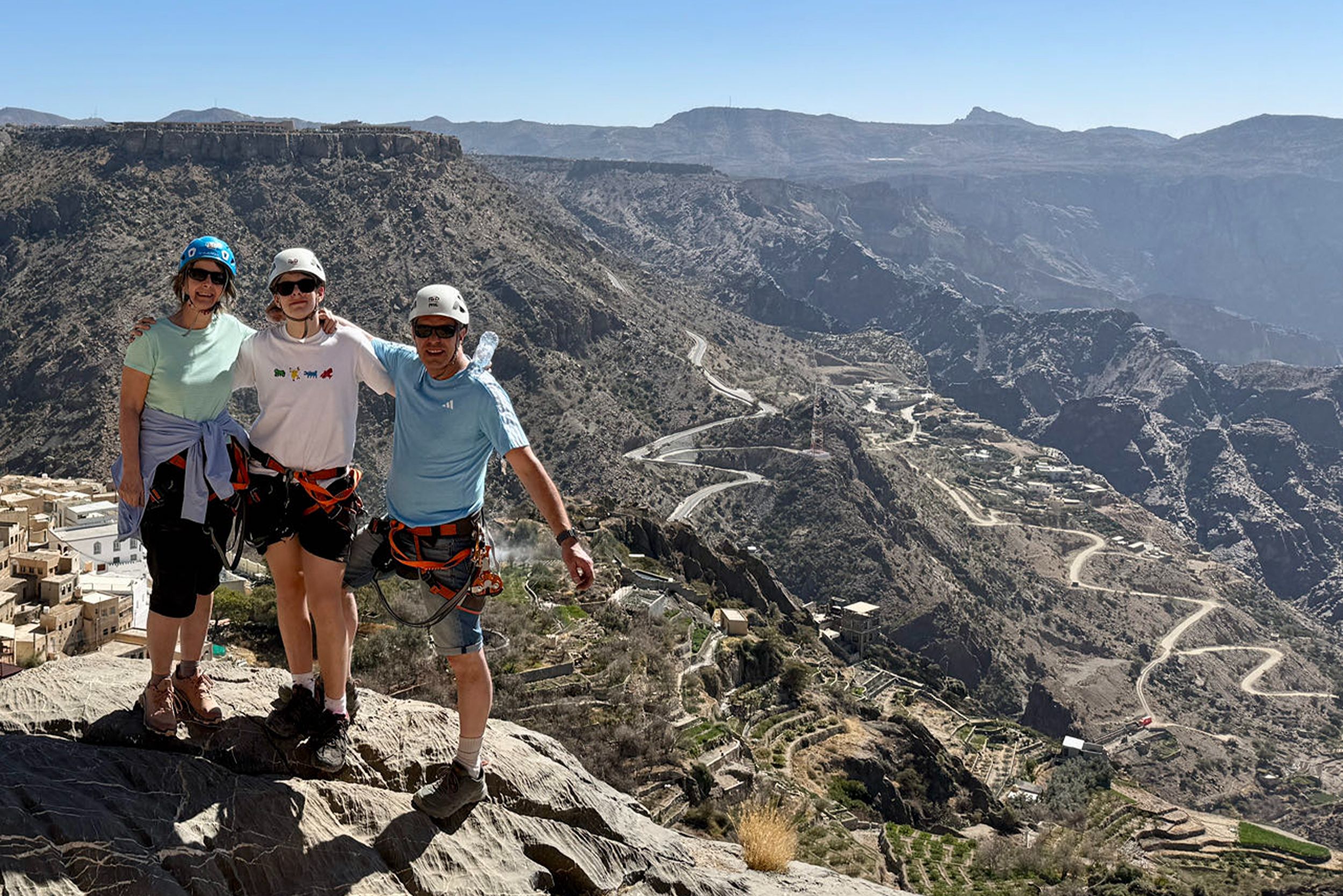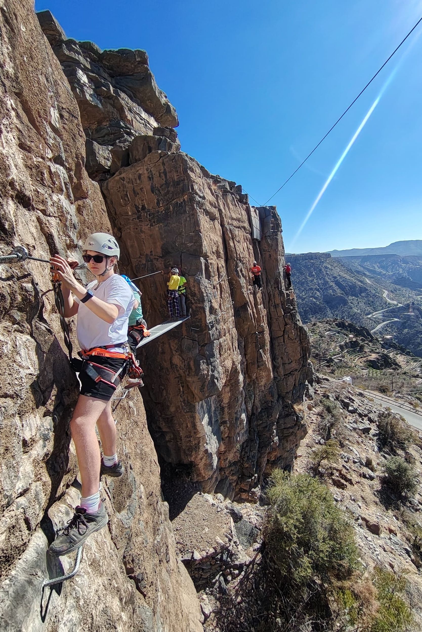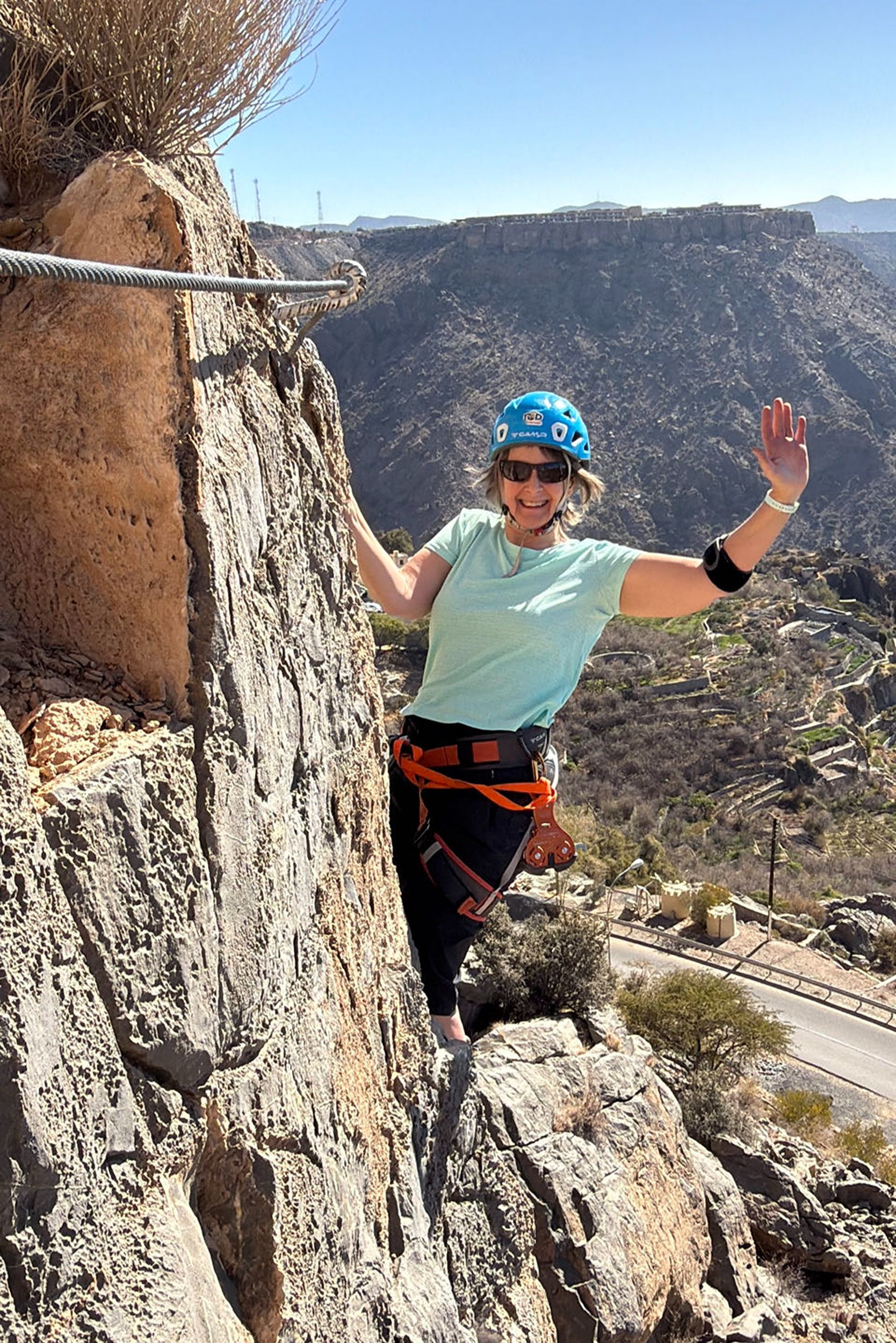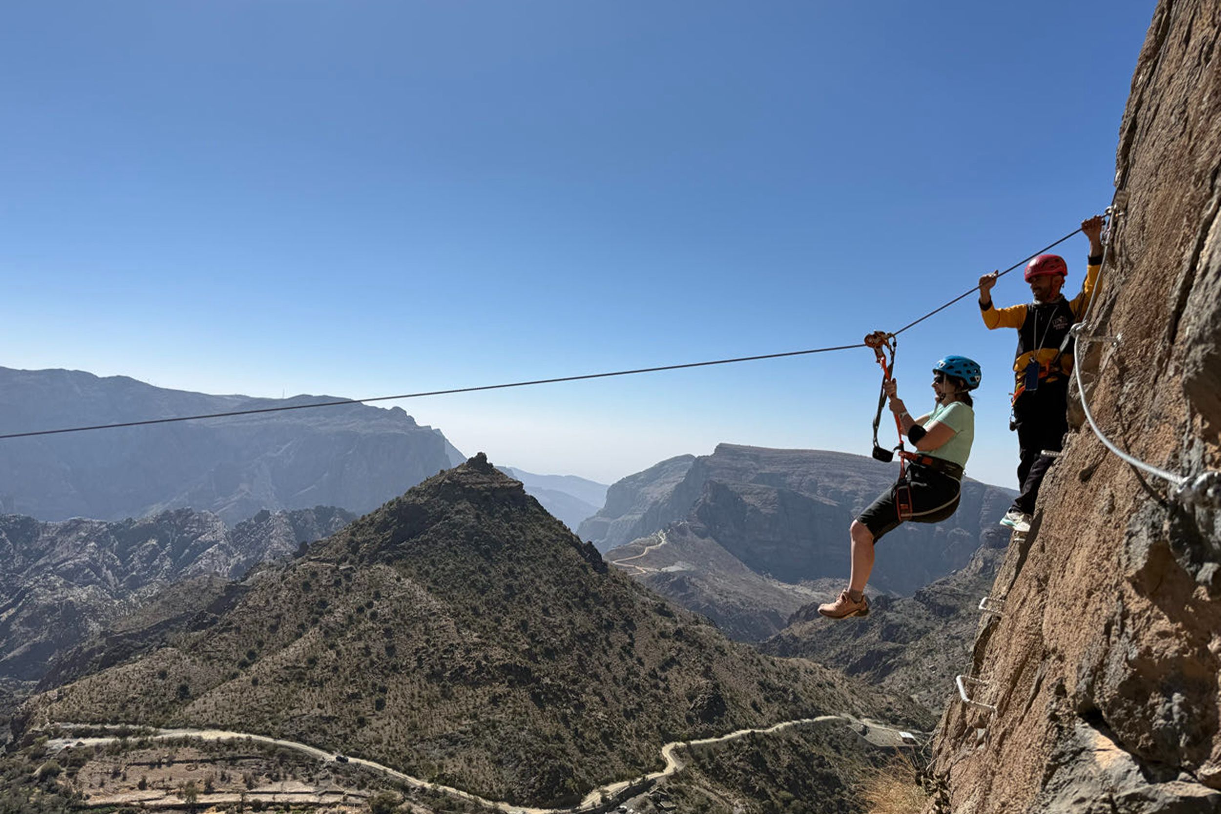 Vandaag beleven jullie samen met het gezin een echte avonturendag in de bergen van Jebel Akhdar. Tijdens deze via ferrata bewegen jullie langs de rotswanden via gezekerde kabels en stevige stappen, terwijl jullie genieten van indrukwekkende uitzichten over het ruige landschap van Oman.