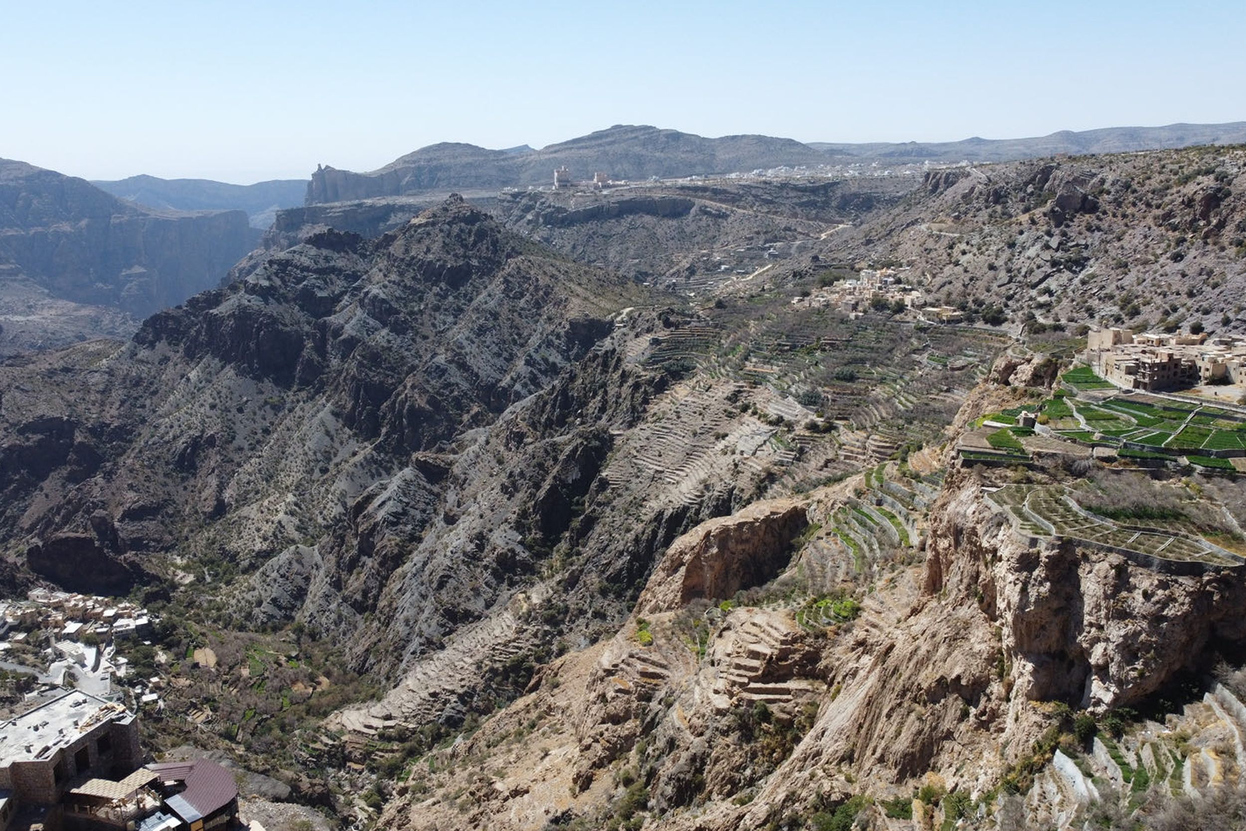 Vandaag rijden jullie de bergen in richting Jebel Akhdar, een totaal andere wereld dan het woestijnlandschap. Terwijl de weg zich langzaam omhoog slingert, maken palmbomen plaats voor ruige rotsen, koele berglucht en indrukwekkende uitzichten. Hoog in het Al Hajar-gebergte, ontdekken jullie een groenere kant van Oman met terrassen, kleine dorpjes en prachtige panorama’s.