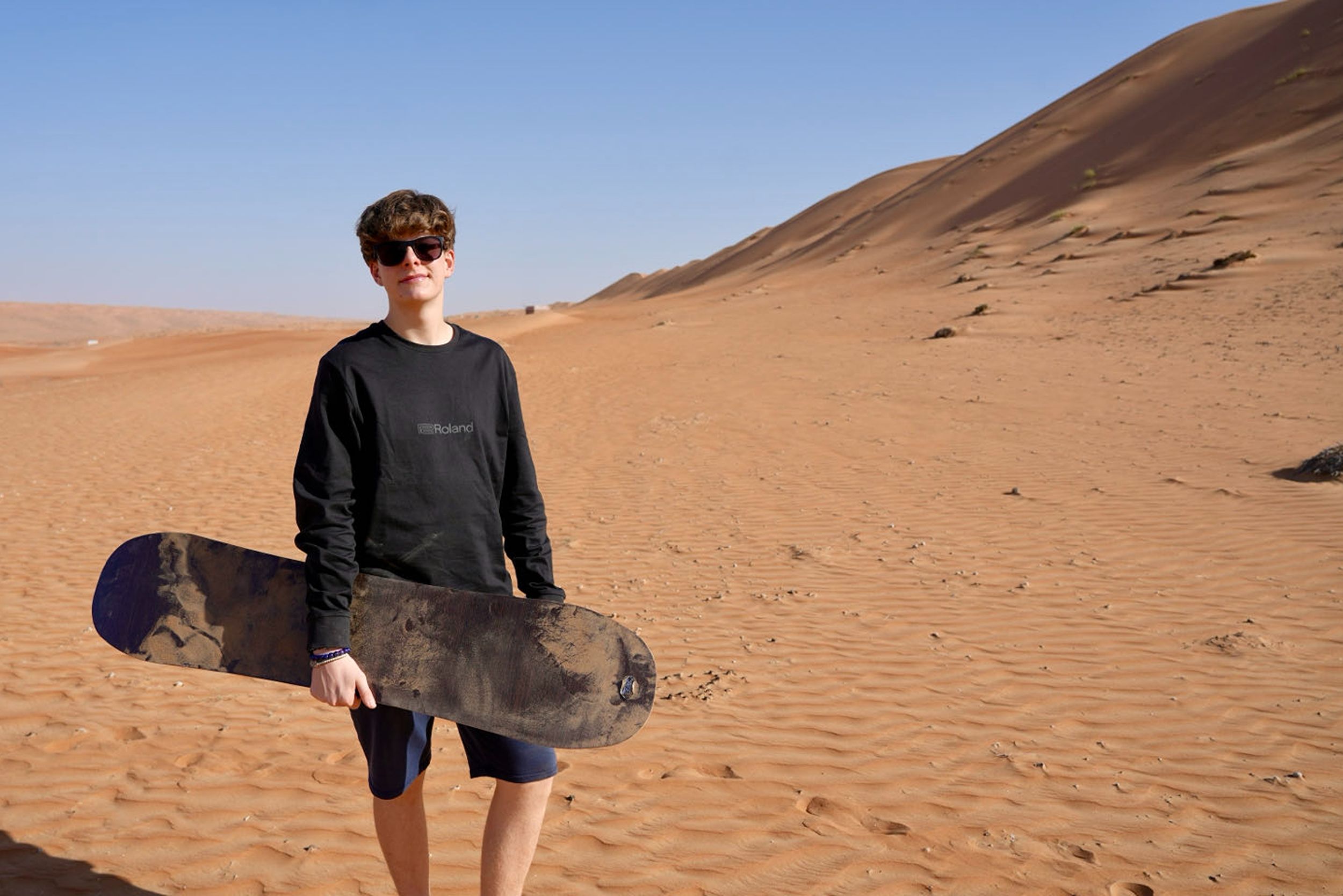 Vandaag gaan jullie sandboarden in de Omaanse woestijn. Samen met het gezin trekken jullie de duinen op om daarna met jullie board naar beneden te glijden over het zachte zand. Het voelt een beetje alsof je aan het snowboarden bent, maar dan midden in de warme woestijn.