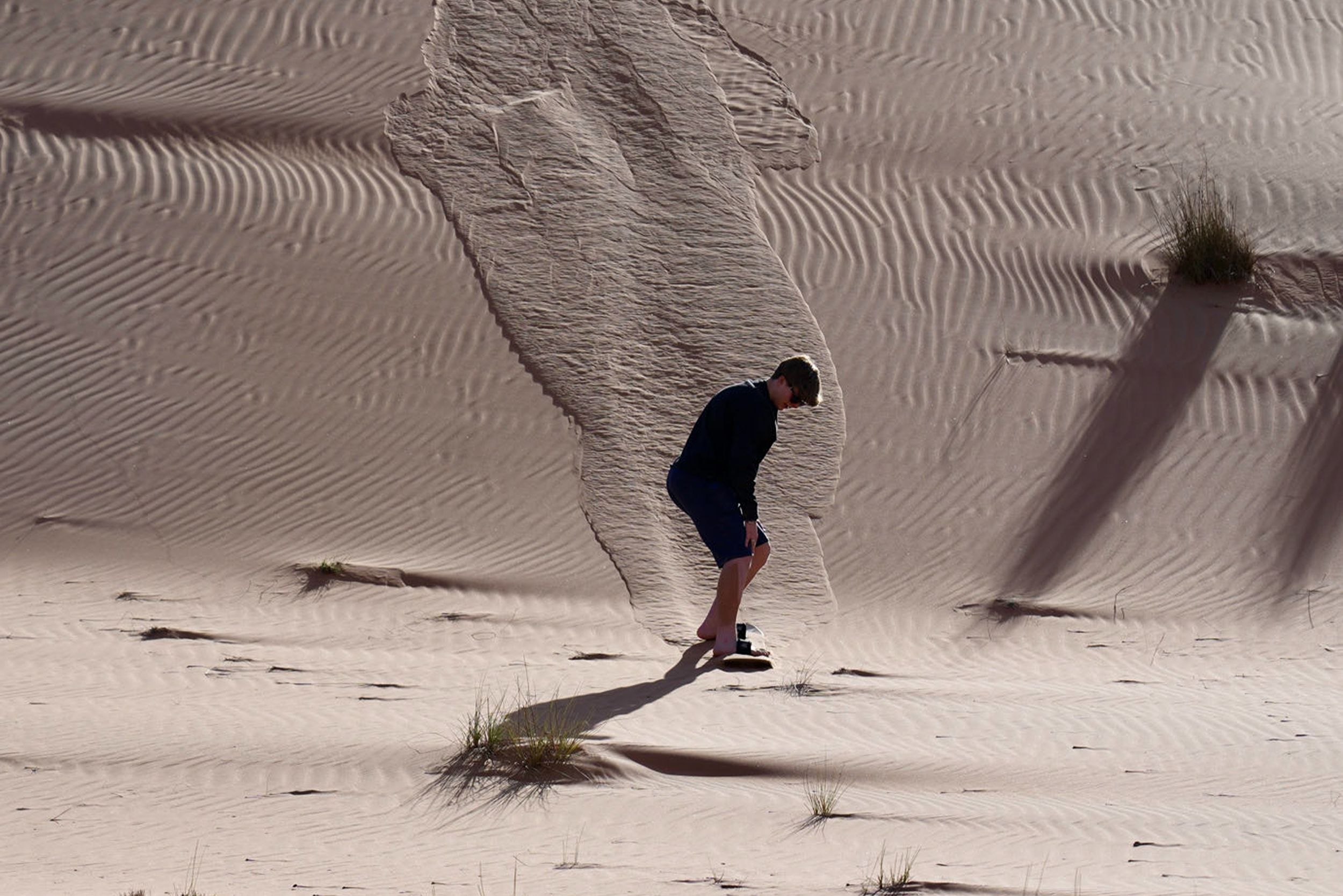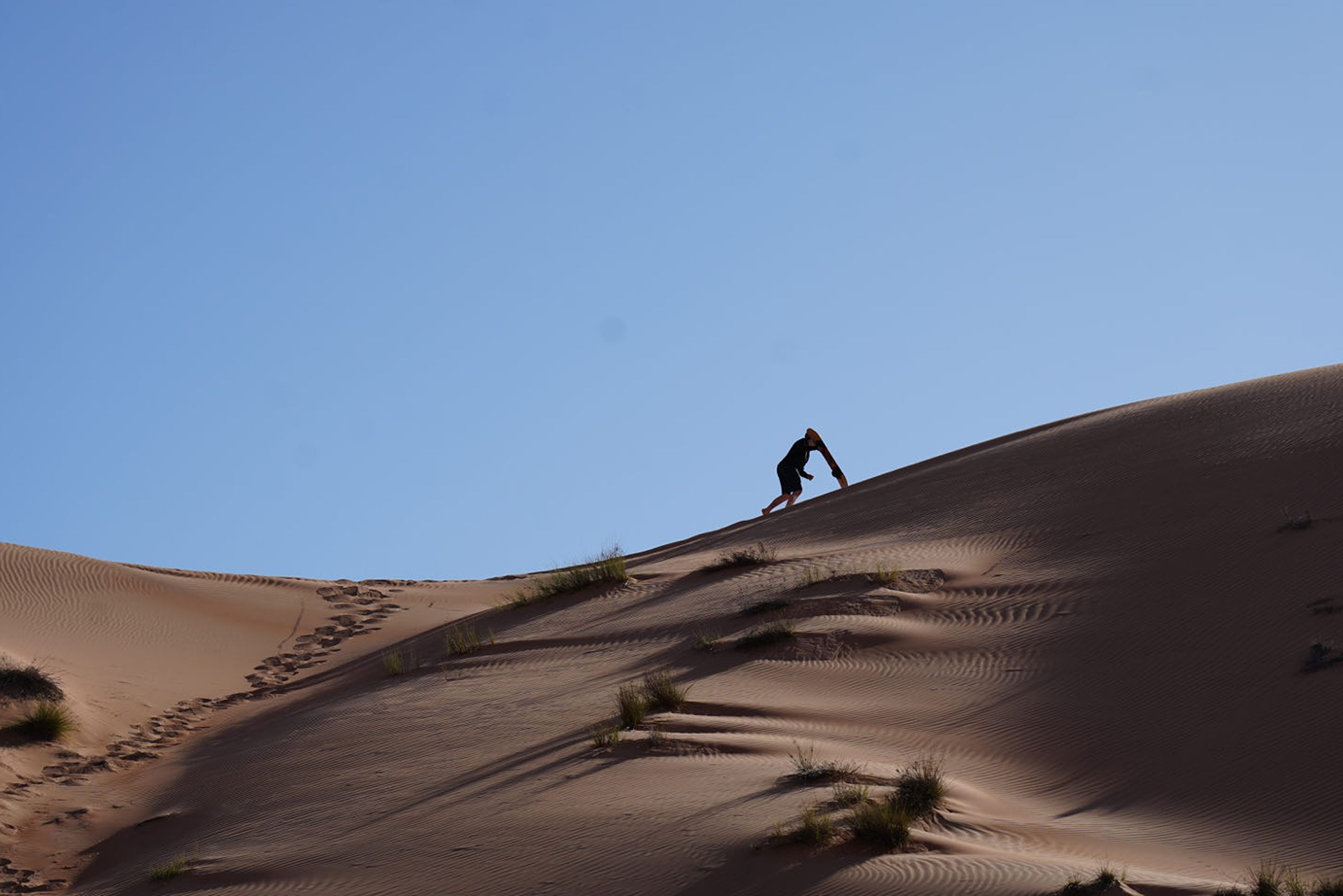 Kinderen en tieners vinden dit vaak geweldig om te doen. Na elke afdaling wandelen jullie weer naar boven om het nog eens opnieuw te proberen. Onderweg genieten jullie van de prachtige uitzichten over de golvende zandduinen en de eindeloze stilte van de woestijn.